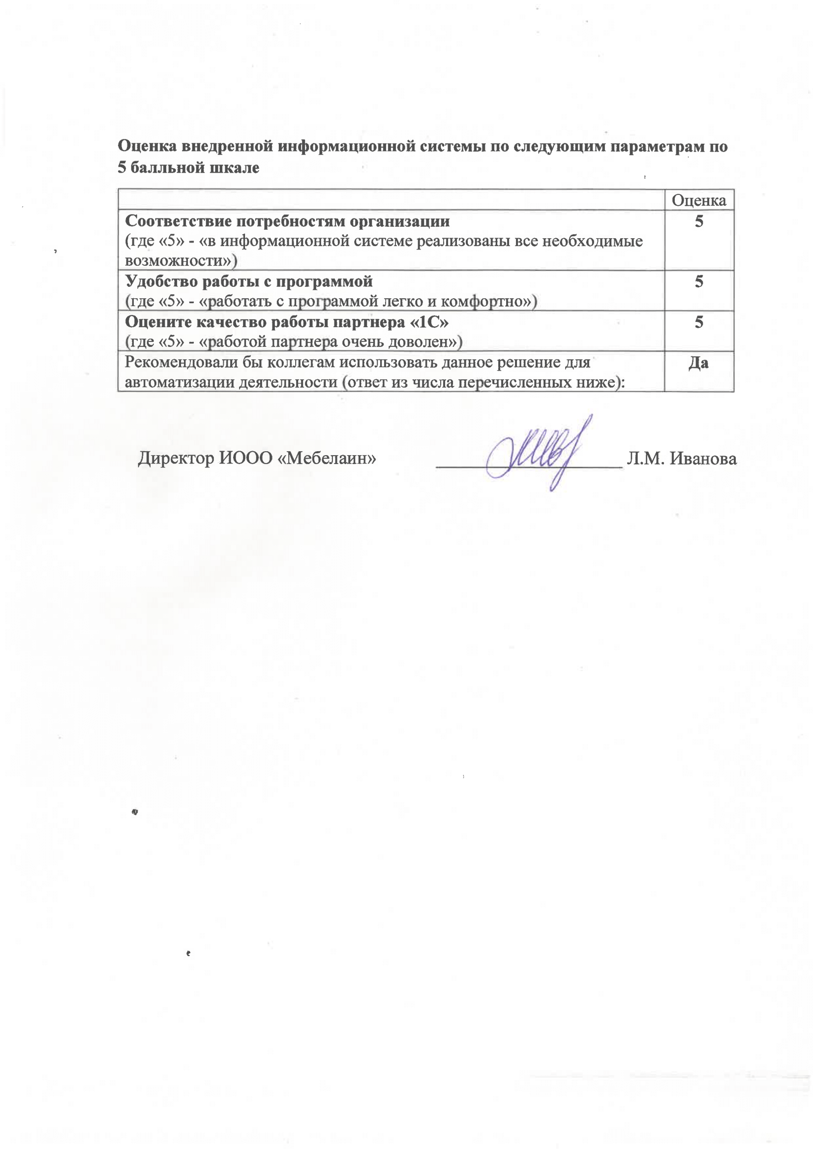 Отзыв на внедрение 1С:Предприятие 8. ERP Управление предприятием 2 для Беларуси на ИООО «Мебелаин»